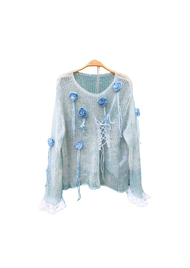 Flower arrange lace up mohair sheer knit jacket/indigo♯260113061