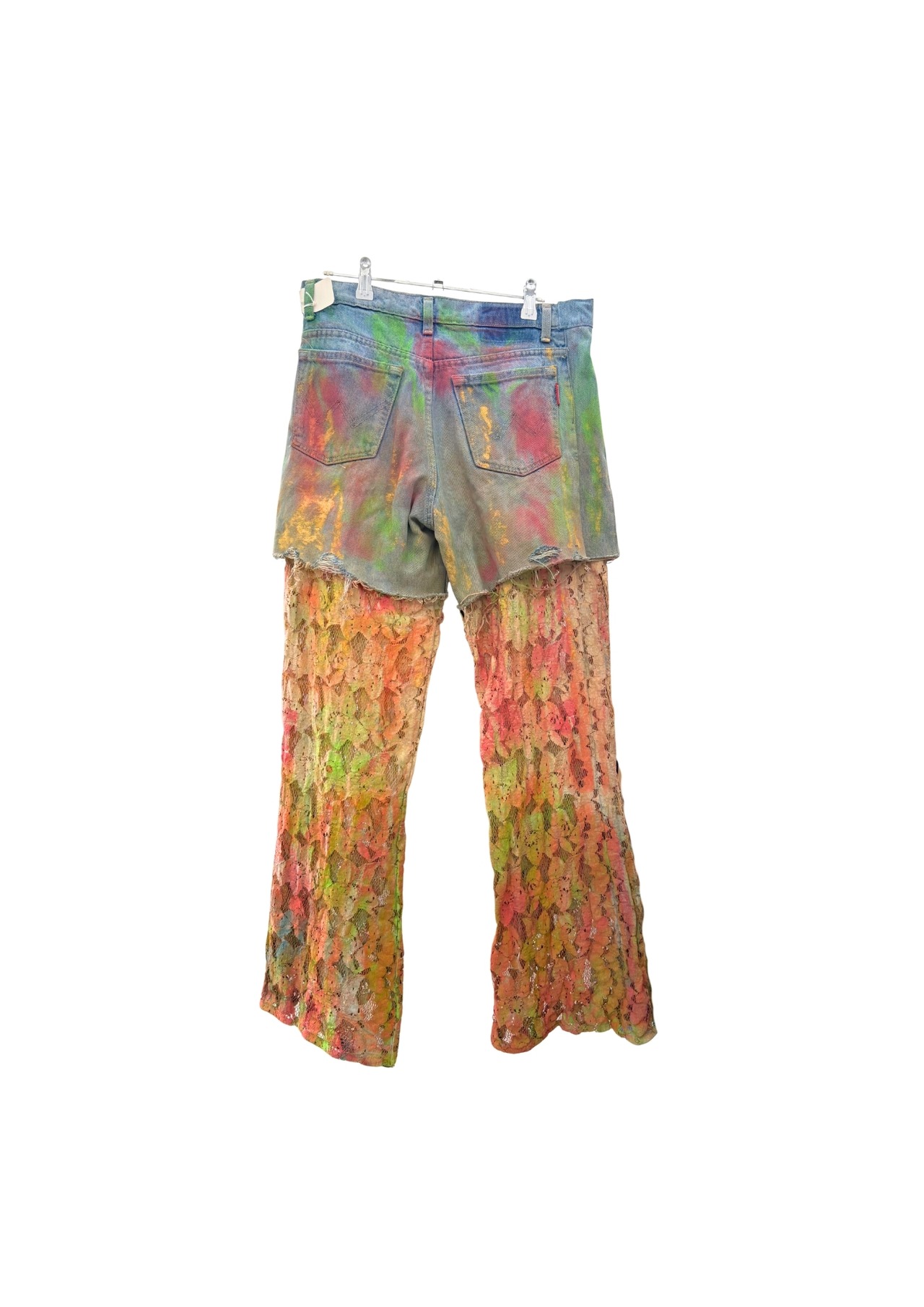 lace flare denim pants/indigo/paint#061