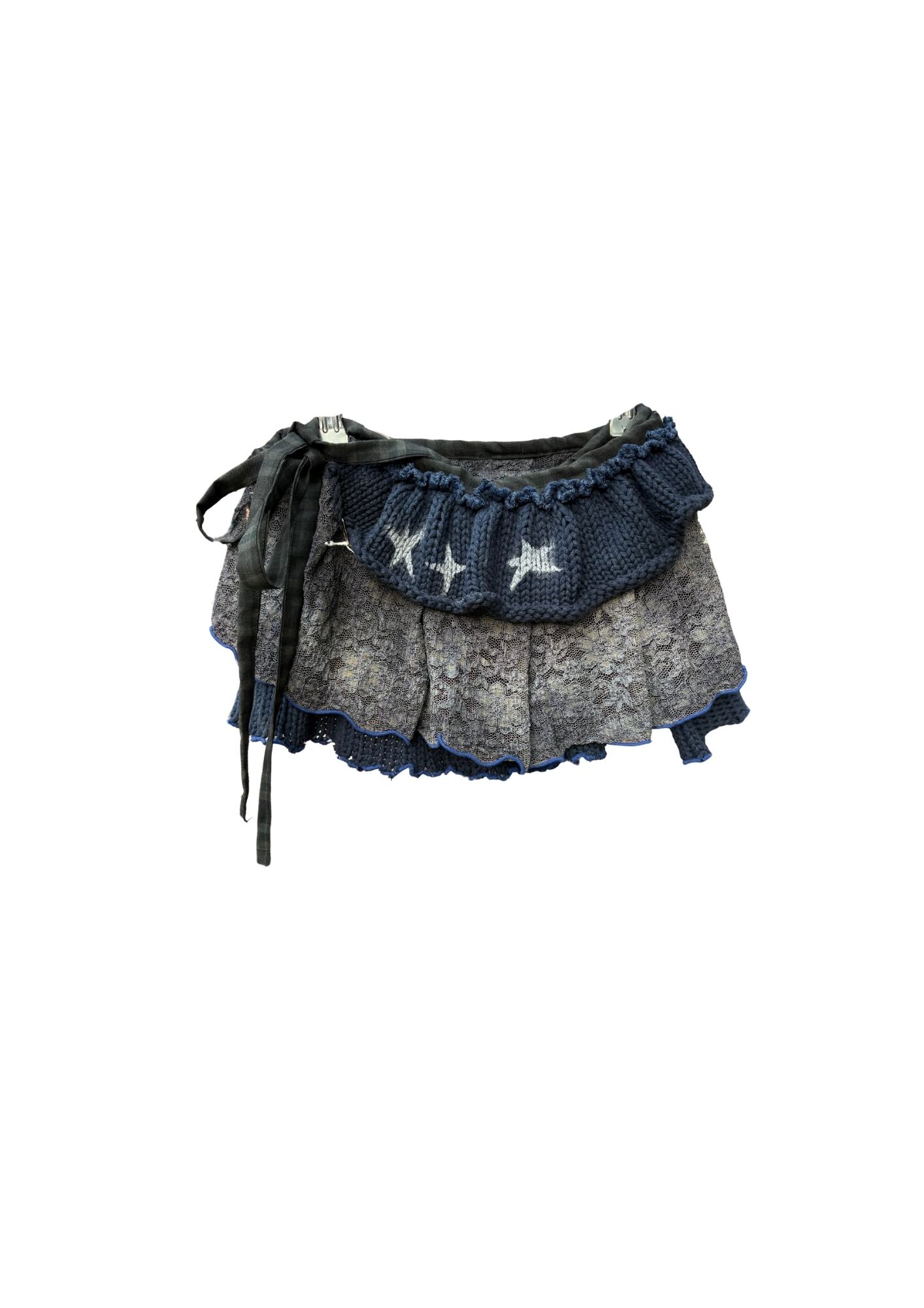 Knit and lace ruffle wrap skirt/logwood#251013031
