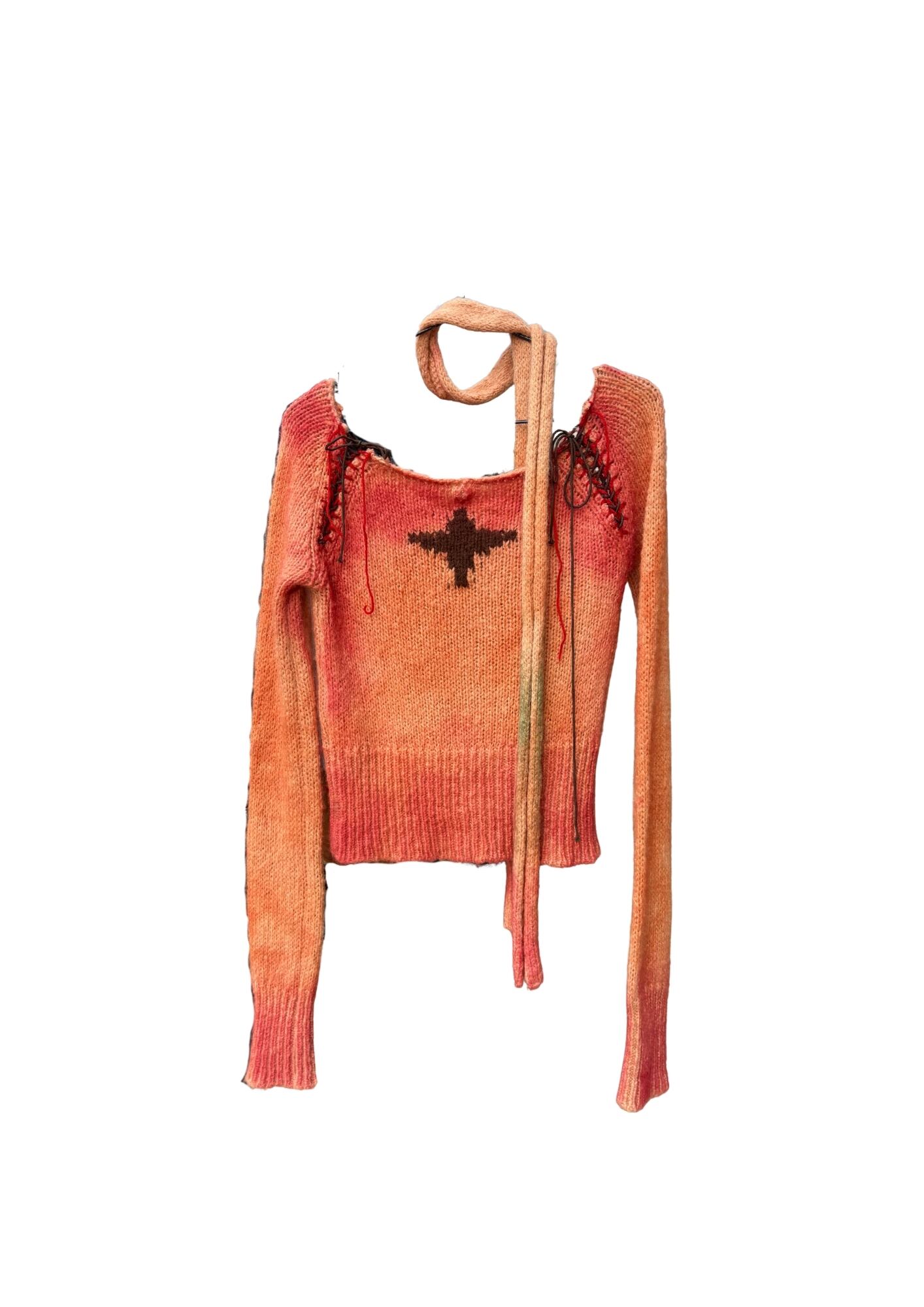 wide neck lace-up wool top/madder#