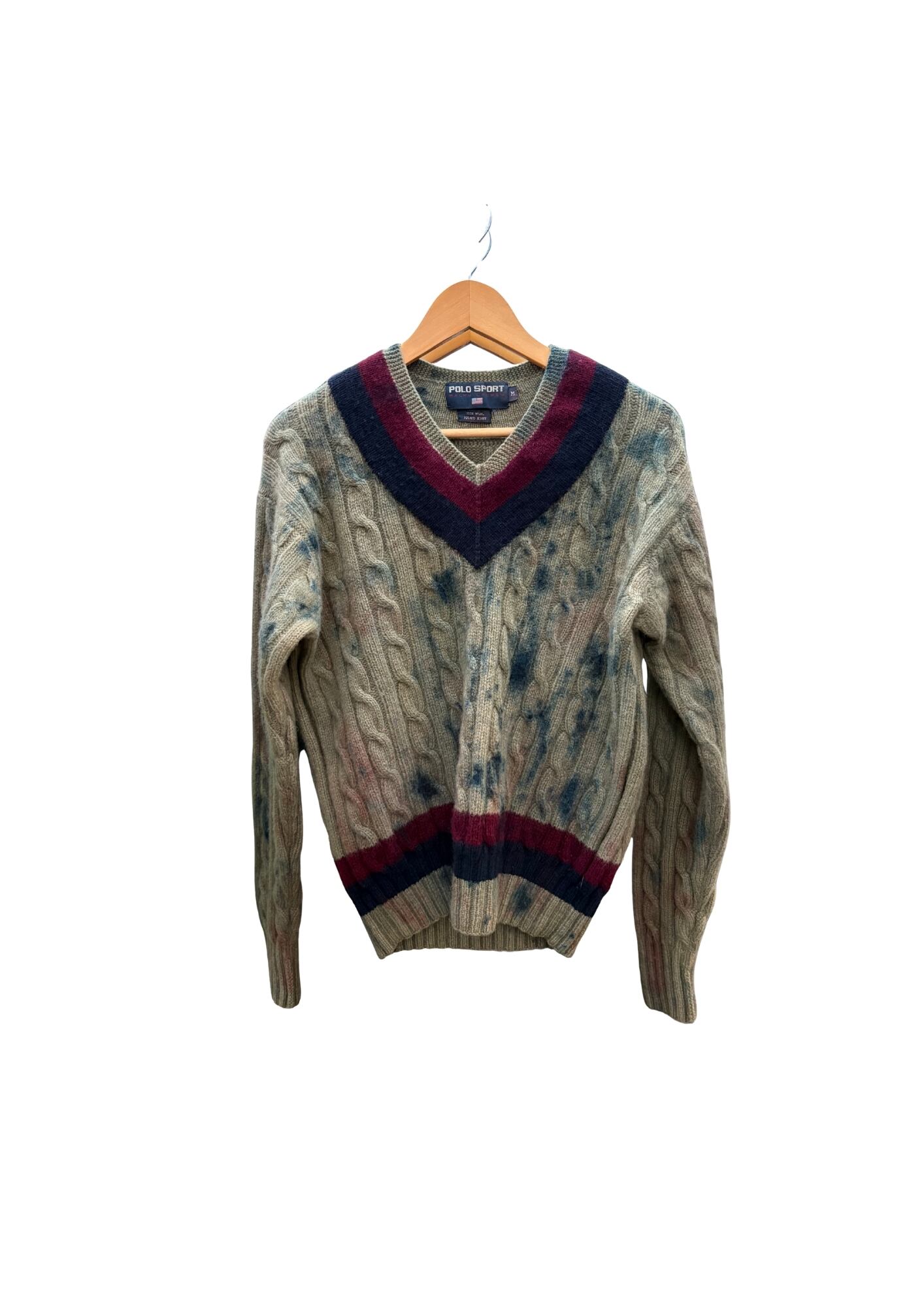 V neck wool knit/cacao/coffee/indigo