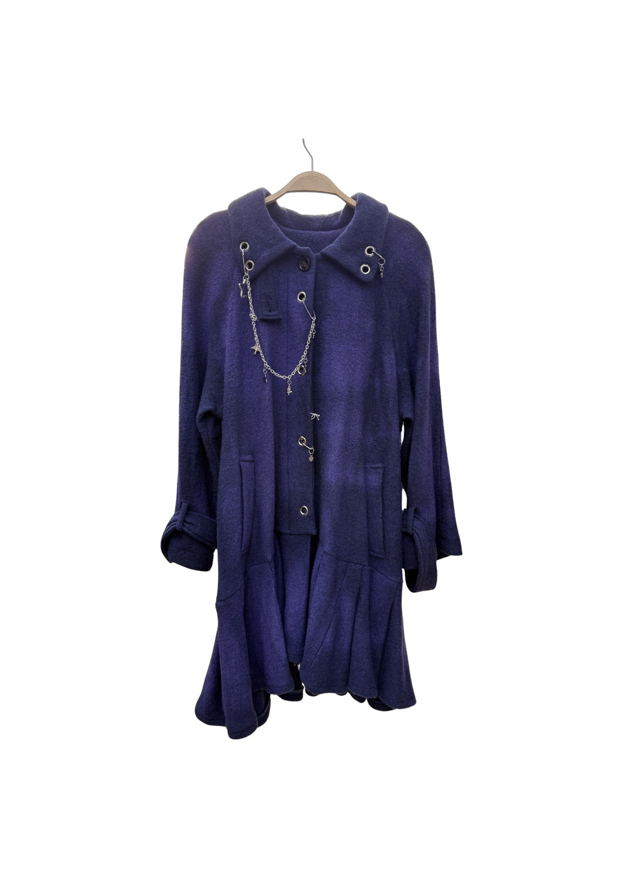 star chain pleats skirt rayon wool coat/#26123031