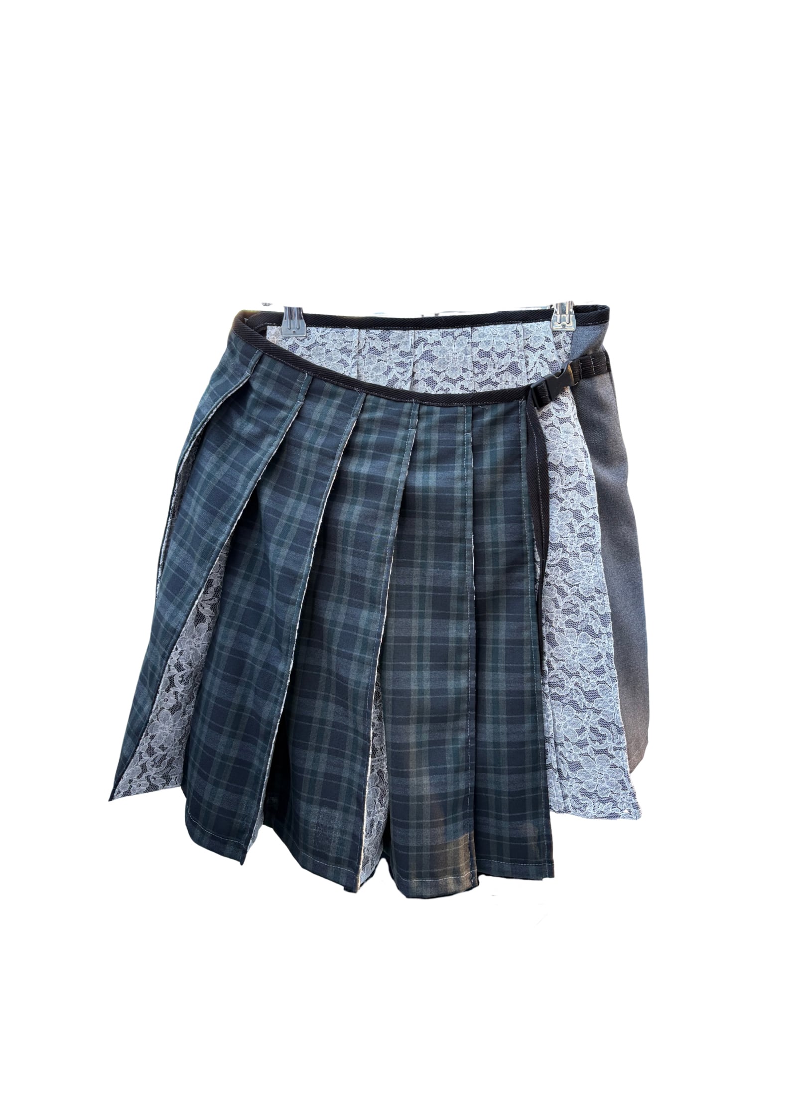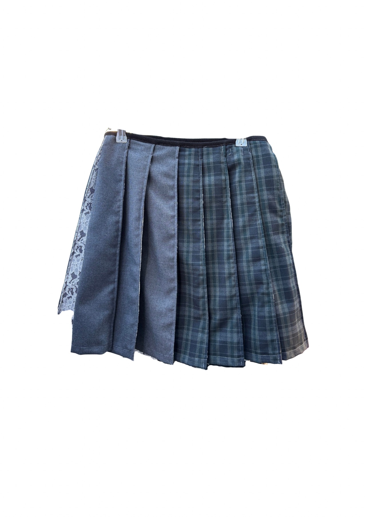 plaid pattern lace pleats skirt