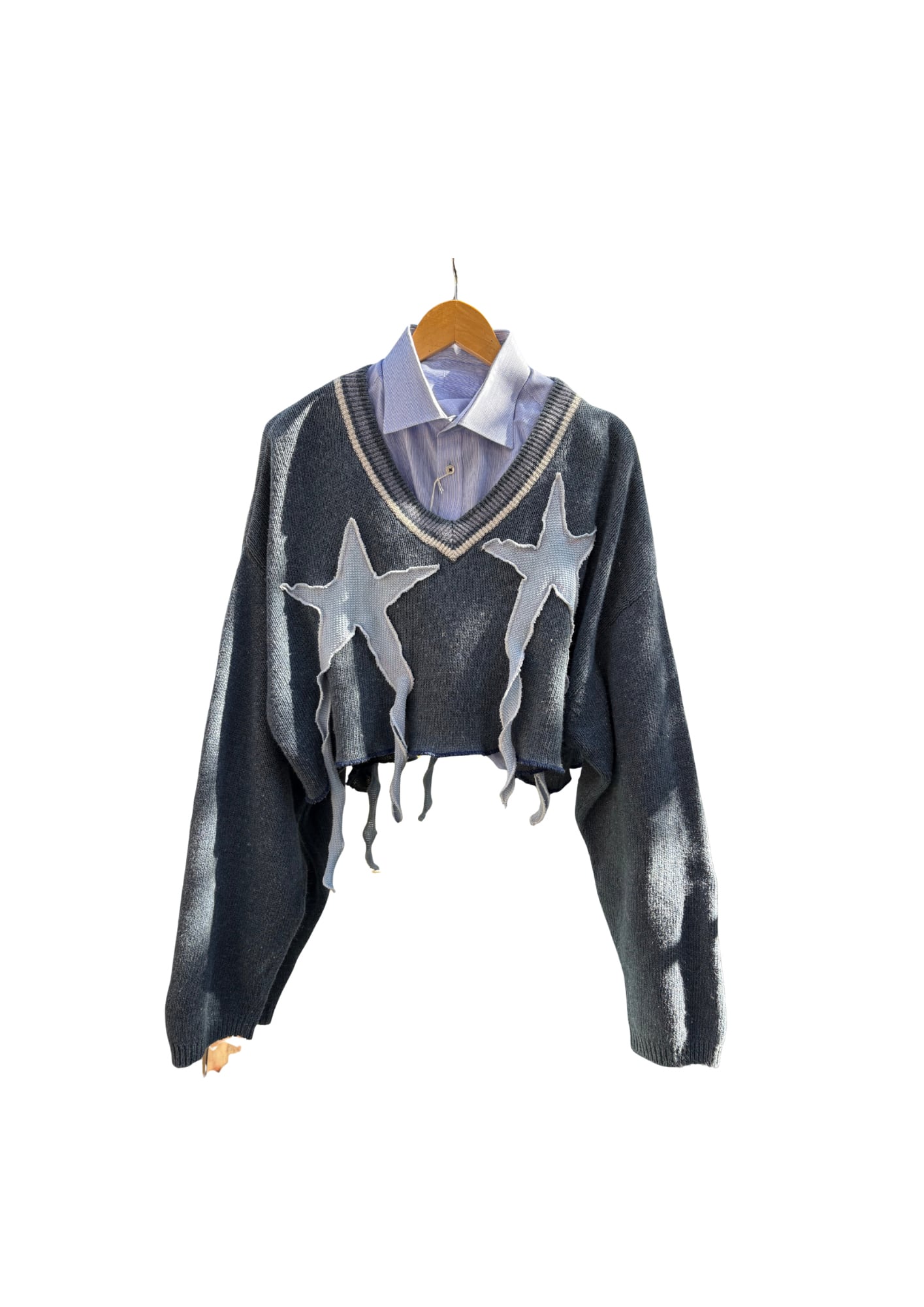 重ね着でアレンジが楽しめるニットになっています