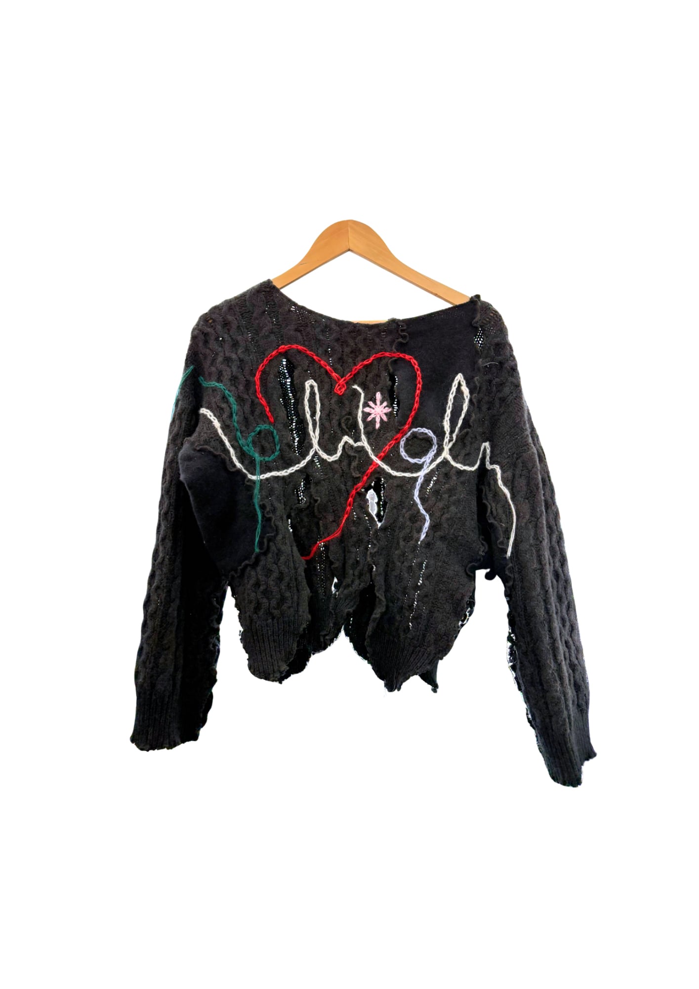 wave and embroidery arrange knit tops shirt setup/#