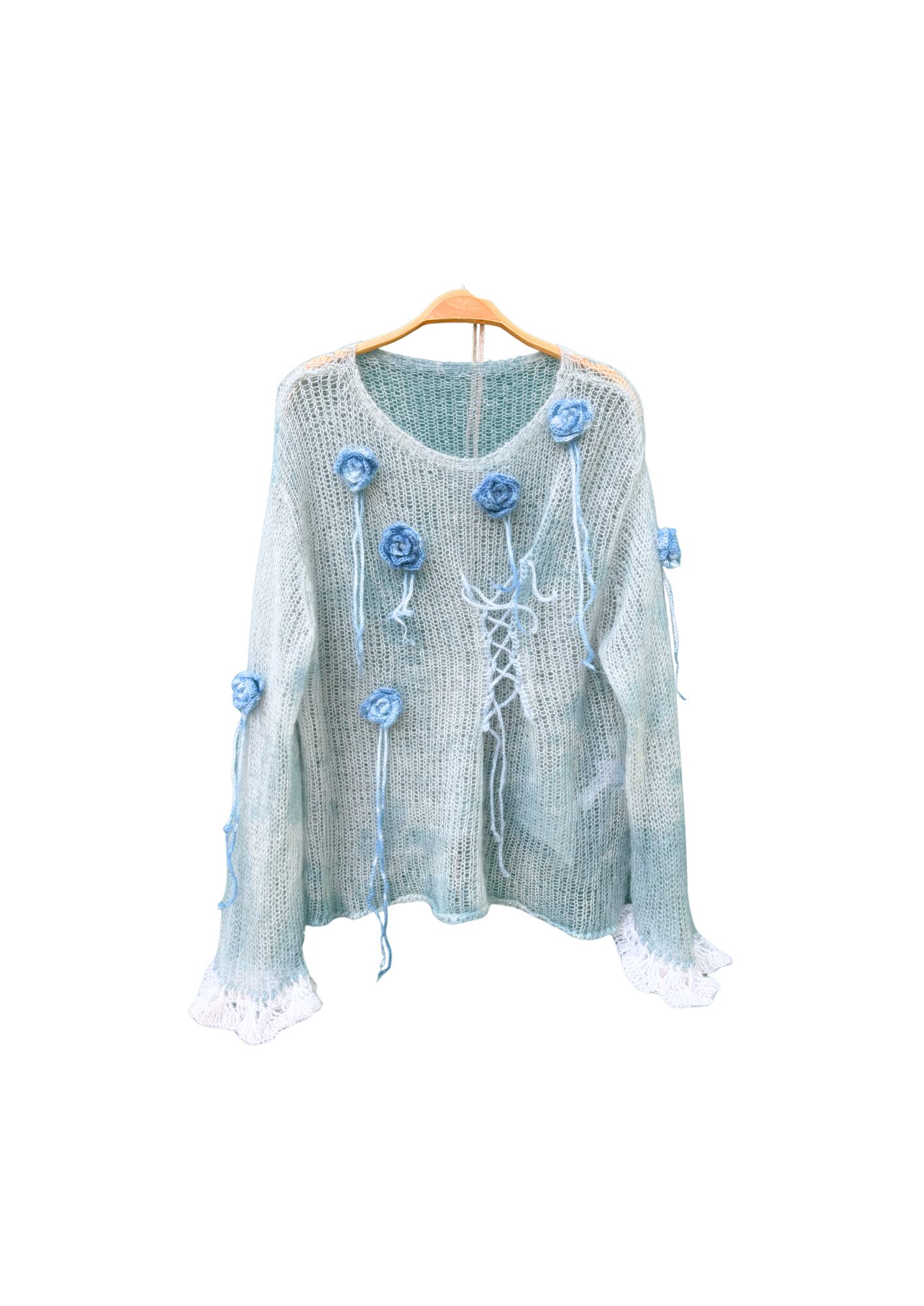 Flower arrange lace up mohair sheer knit jacket/indigo♯260113061