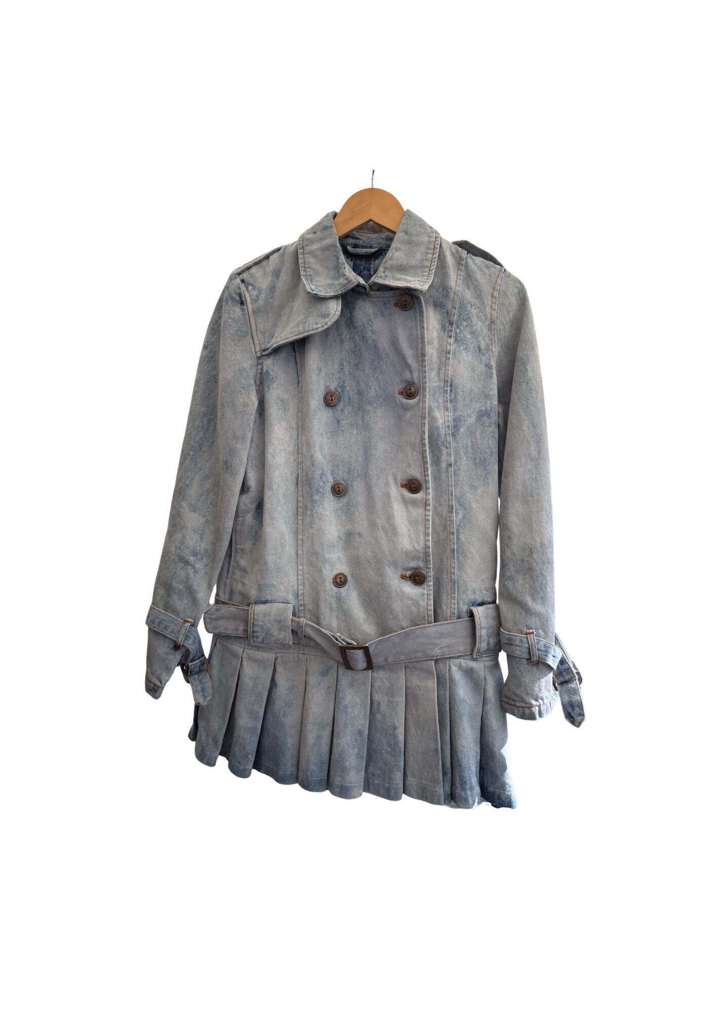 pleats skirt law west belt one-piece denim jacket/indigo#