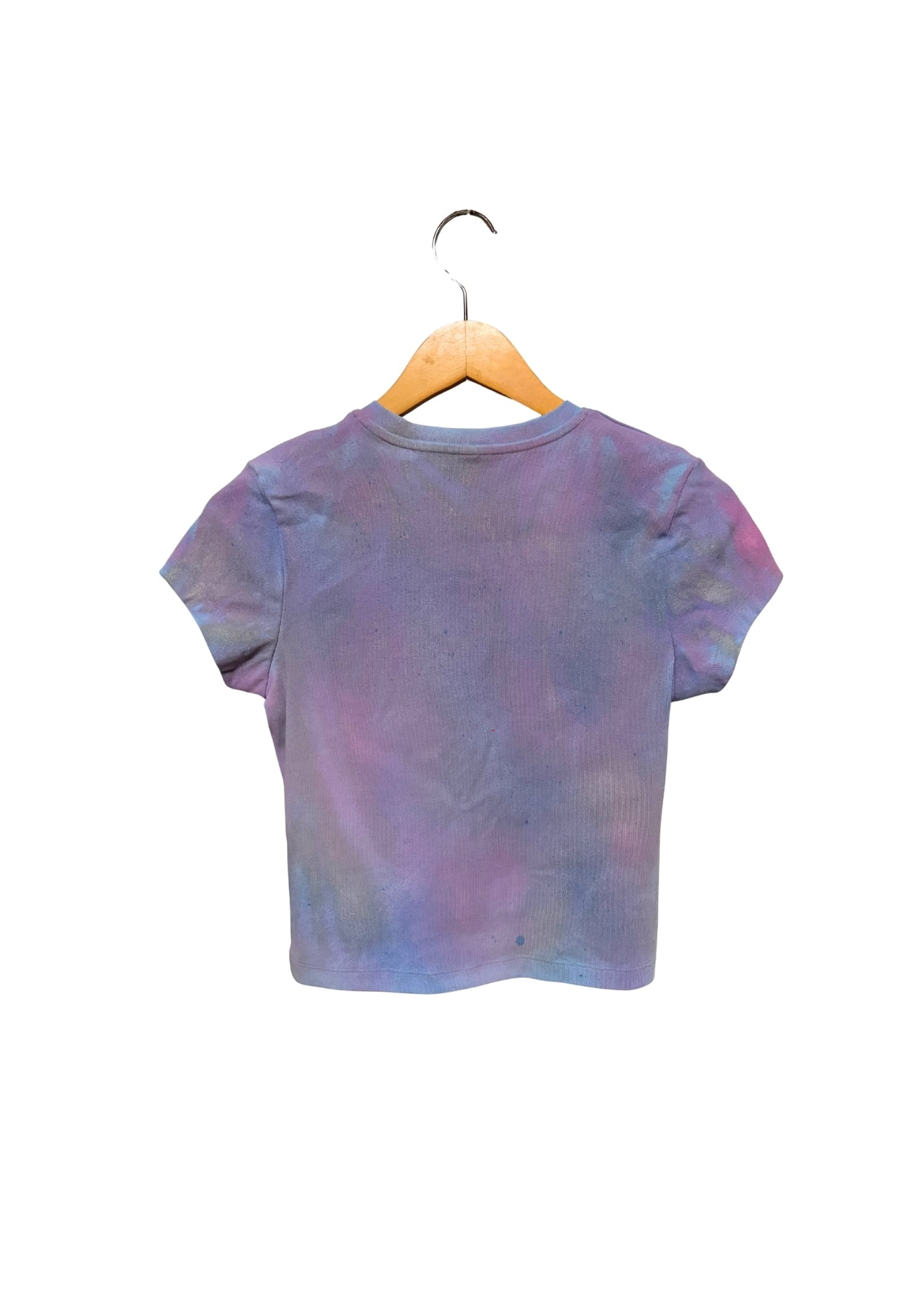 ハートモチーフをペイントした一点物Tシャツ。
