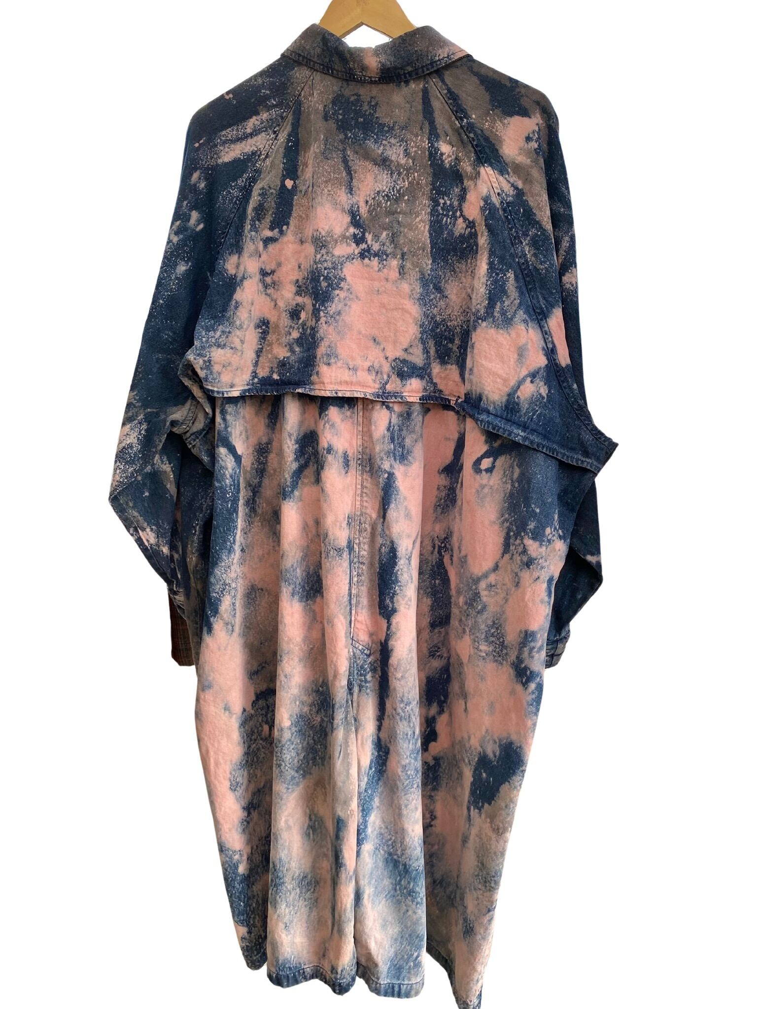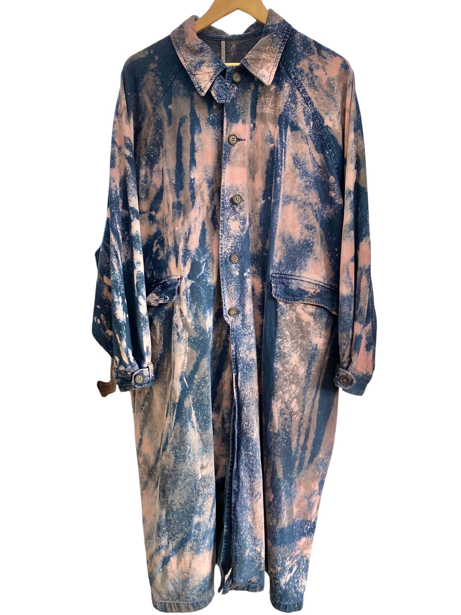 madder/logwood bleached and dyeddenim long coat♯035