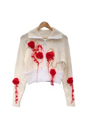 Double zip-up Wool mohair Knit frill short length tops l#41226091